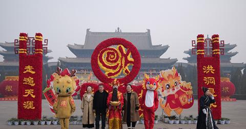 2024年2月11日,在山西洪洞大槐树景区,东谈主们参加庙会行径。