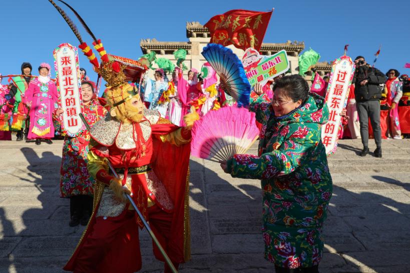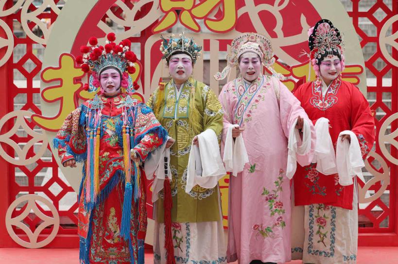 2025年1月30日,在山东省临沂市新春庙会上,民间艺东谈主扮演省级非物资文化遗产代表性相貌“弦子戏”。