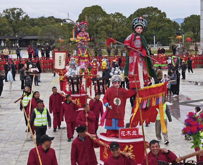 2025年2月1日,江西省上饶市,非遗“甲路抬阁”正在巡游。