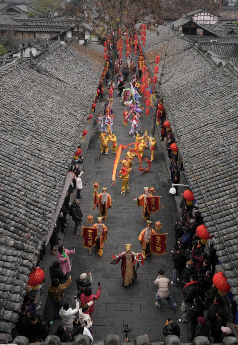 2025年1月7日,在阆中古城举行的非遗展示展演巡游行径。