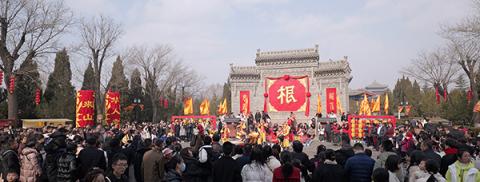 2024年2月11日,在山西洪洞大槐树景区,东谈主们参加庙会祭祀行径。
