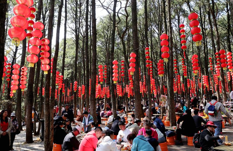 2025年2月2日,正月初五,昆明金殿新春庙会贺新春。羊汤锅长街宴上非遗好意思食飘香引客来,现场氛围特别喜庆。