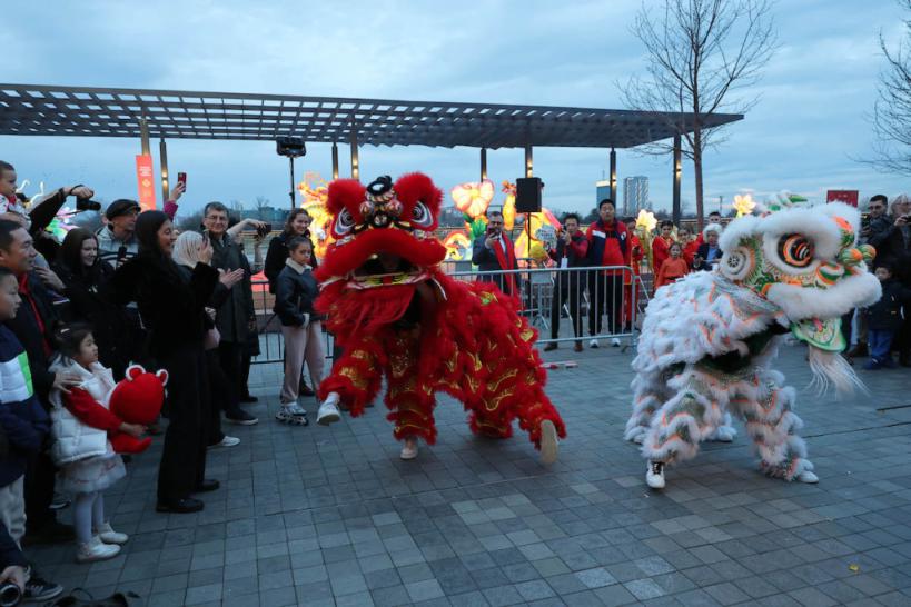 当地时候2025年1月28日,东谈主们在塞尔维亚都门贝尔格莱德举行的“本旨春节”庙会现场不雅看舞狮扮演。